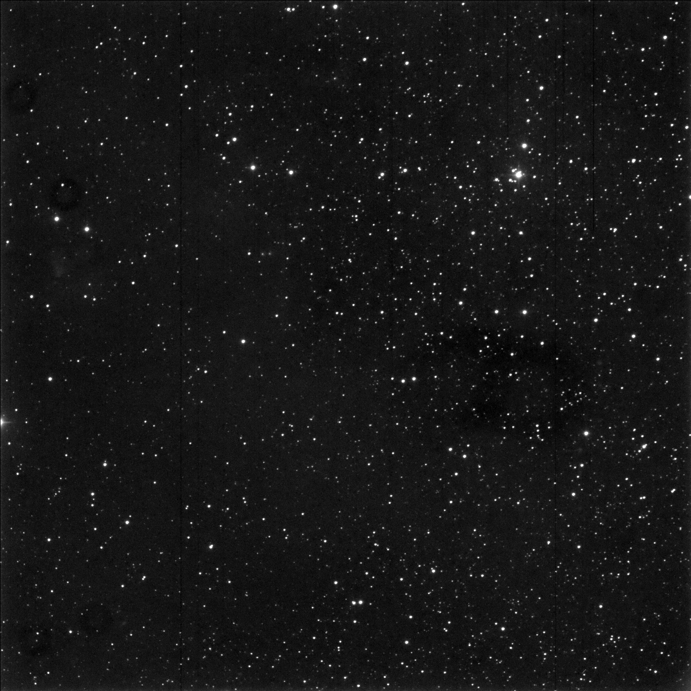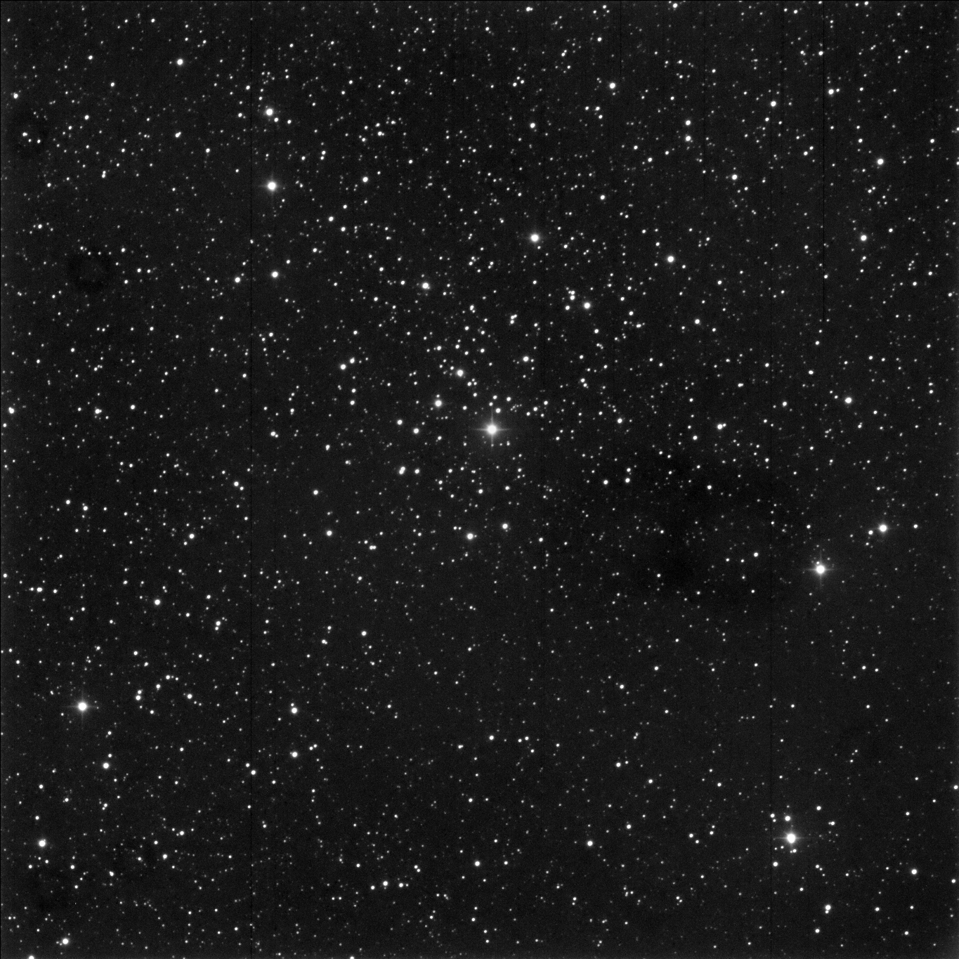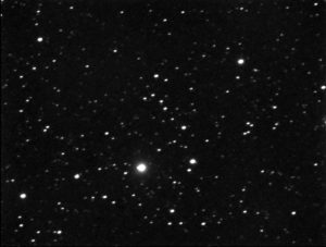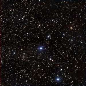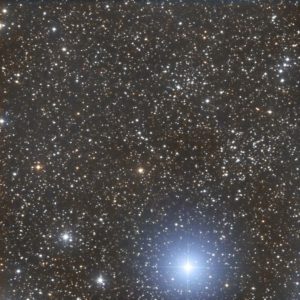 I targeted the bright star just below the center of the photo, SAO 21005.  The cluster lies at about 1 o’clock from that position.  (The photos from Canary Two on the night of October 1 – October 2 all show the same blemishes that were hard to remove.)