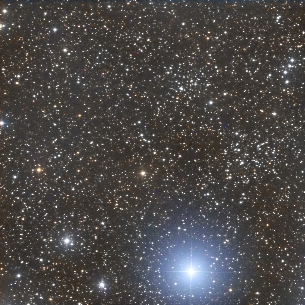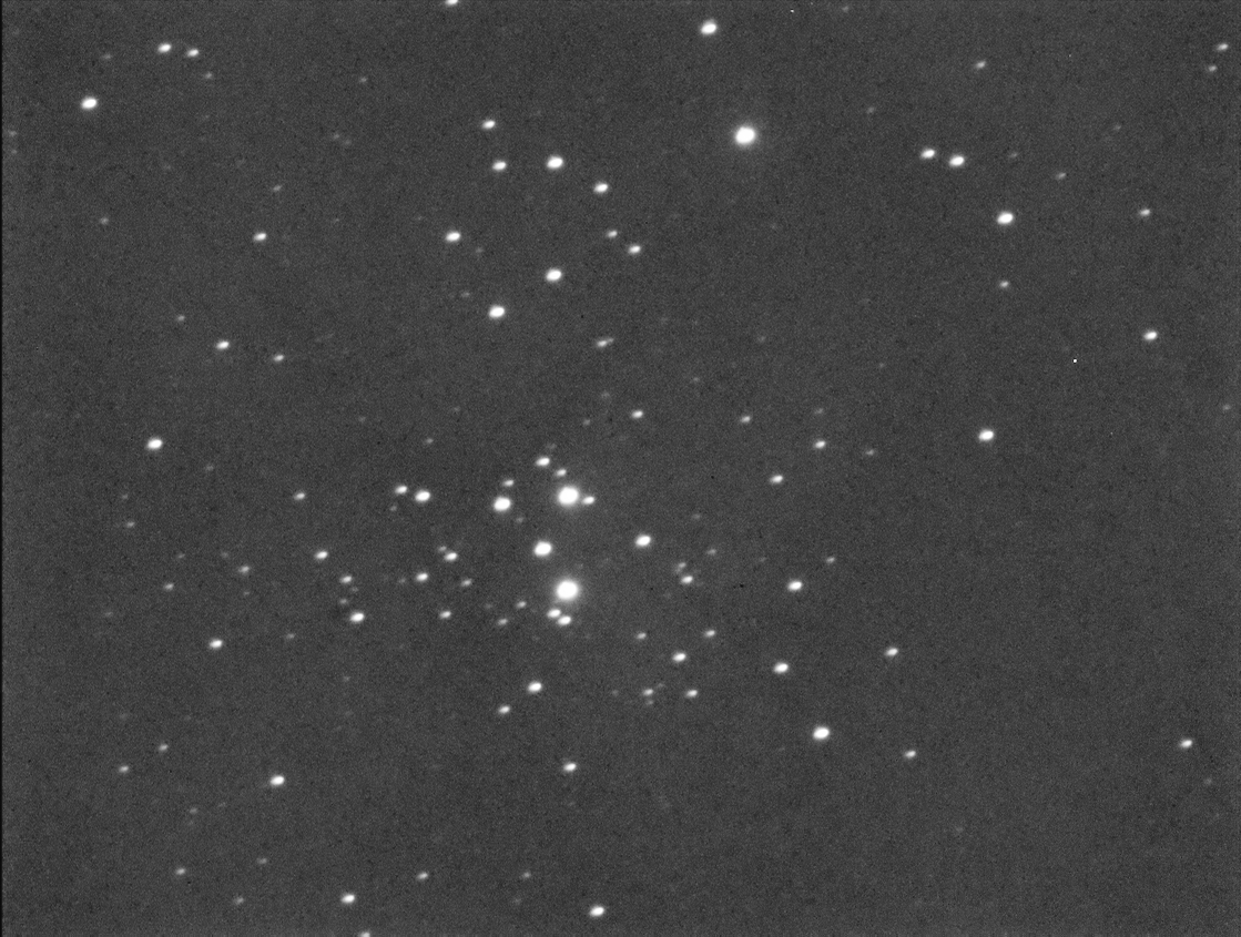 This is an instance where I had to target a star outside the cluster, SAO 11167, the blue star near the center of the frame.  The cluster is quite small and lies up and to the right of 11167.