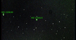 95. RX Peg (HD 208526) / Chile 2 / September 24, 2021 / 4:10 UTC / Not a great lot to comment on in this frame. Not sure what the red artifact is at about 10 o’clock, I checked the charts and it is not a celestial object. I think it must have been generated in the camera.