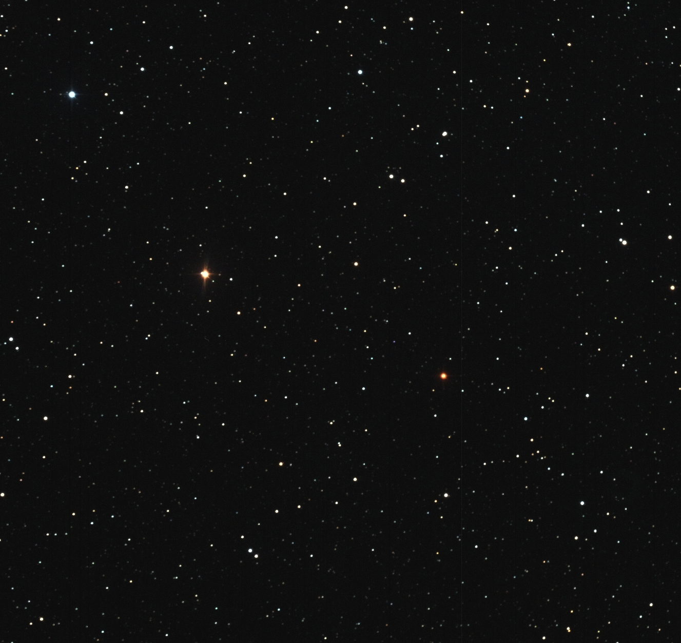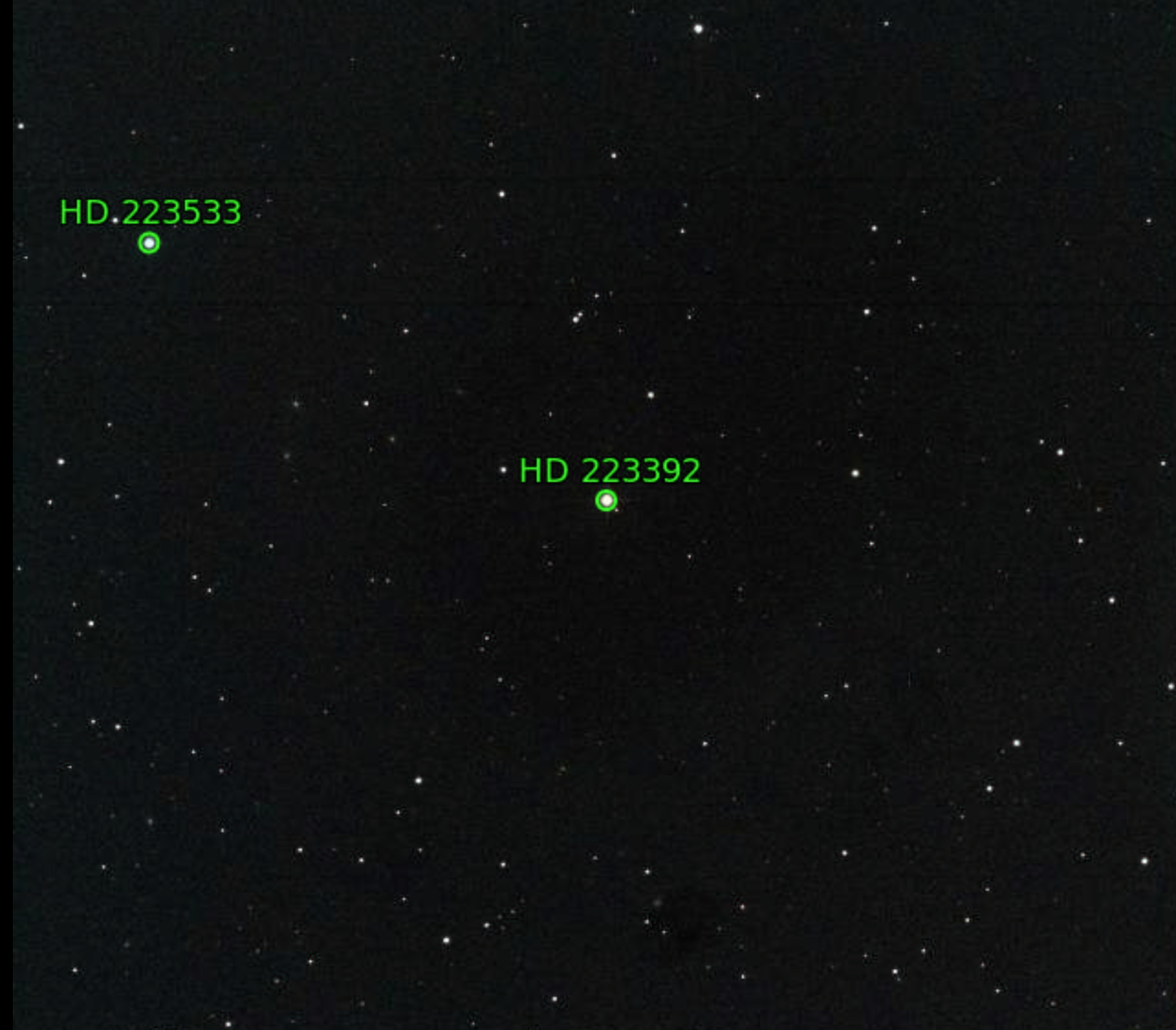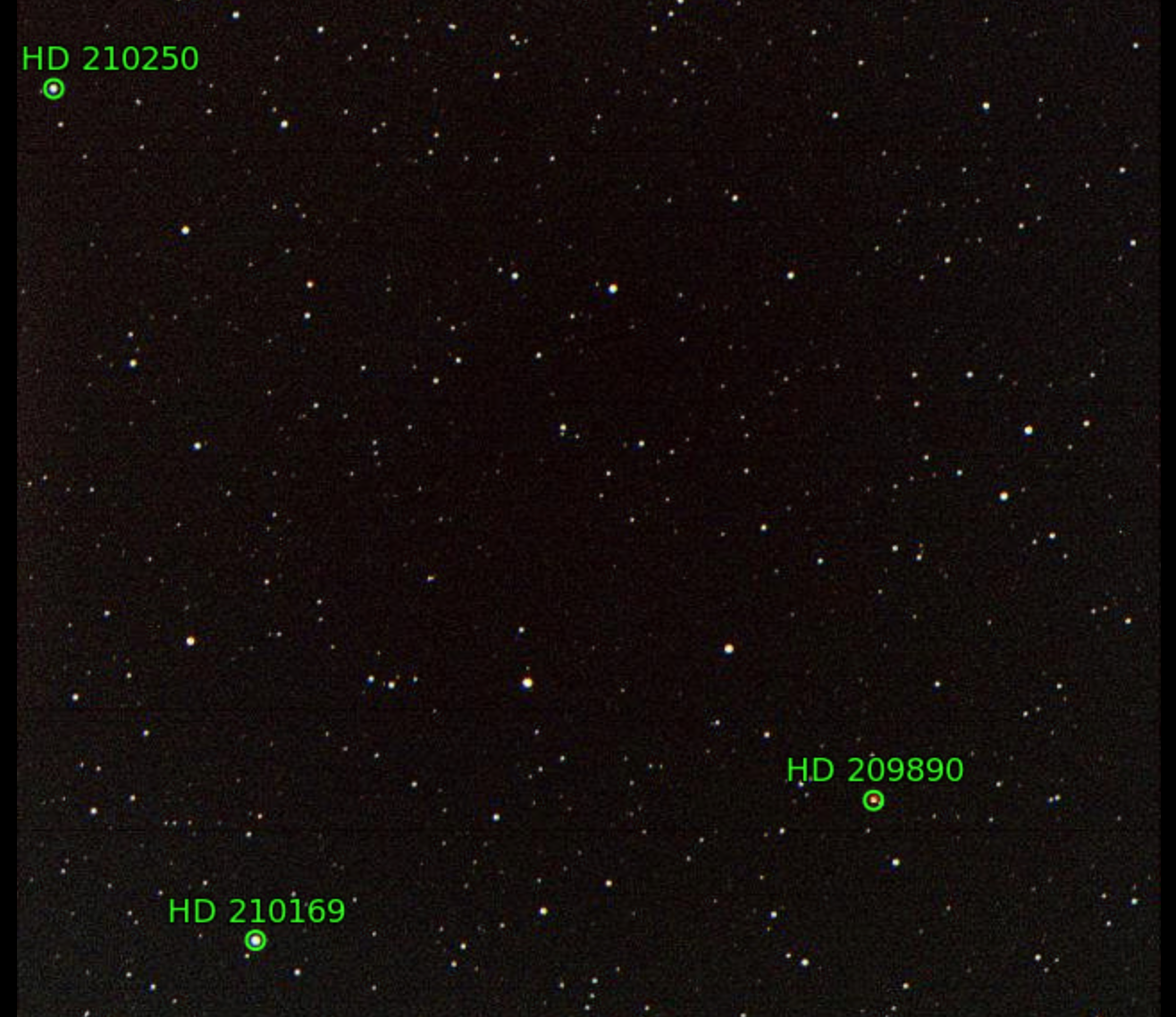100. TX Psc (HD 223392) / Chile 2 / September 25, 2021 / 03:30 UTC / This appears to be one of the least red stars in the program. Sky Safari, which tends to be fairly reliable in terms of colors (at least in my experience), shows TX Psc to be far more red. May have been camera issues or atmospheric interference.