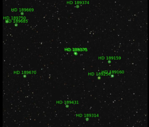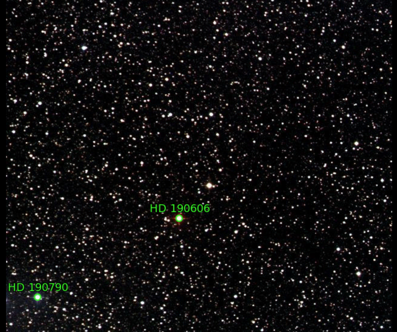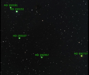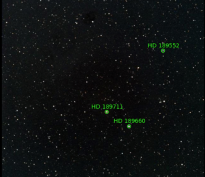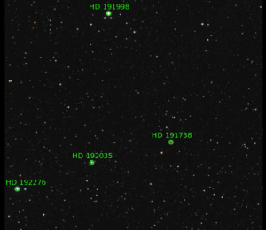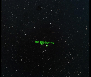 86. RT Cap (HD 192737) / Chile 2 / September 24, 2021 / 4:10 UTC / Sometimes the Slooh scopes pointing and tracking are off, as in this case. Fortunately, RT Cap made it into the frame, but just barely.