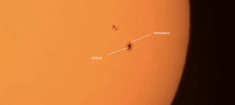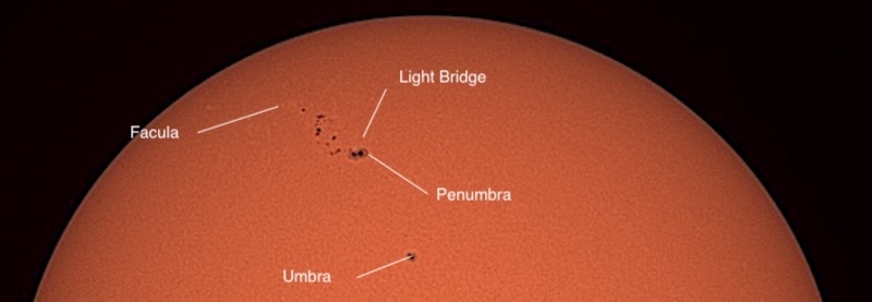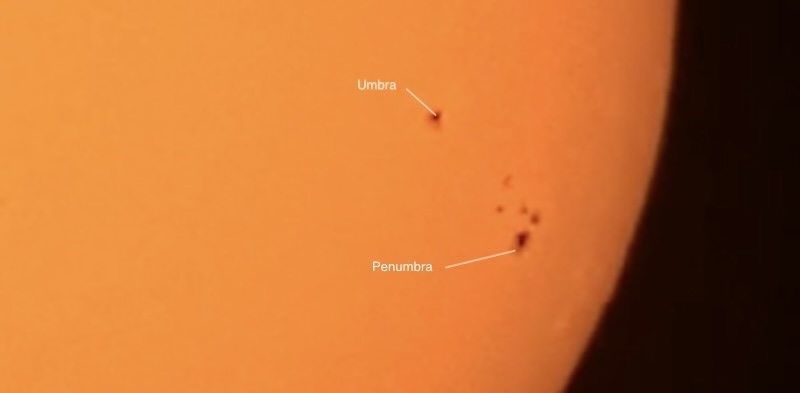 Part B: Five photos of individual sunspot groups, annotated.